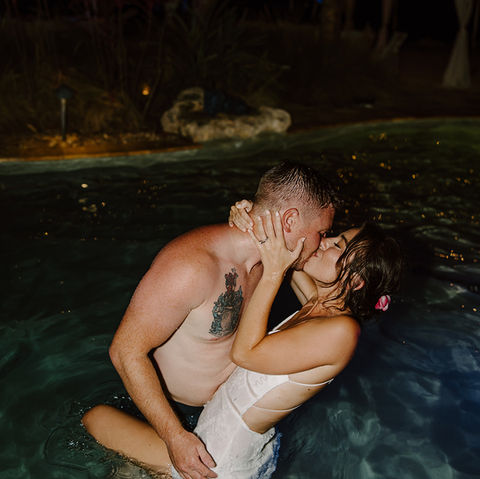 Surrounded by clean, private, white sand beach and lagoon style pool. The separate guest house is ideal for separate spaces for the couple to get ready in without seeing each other.